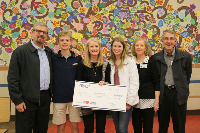 Nominations were accepted through the Arvest Facebook page October 7 - 13. All prizes will go to teachers who work at state-funded schools. Thank you to Arvest Bank for recognizing Mrs. Mitchell's hard work and the hard work of all educators in Arkansas.