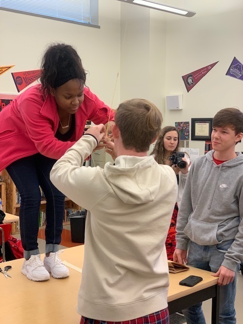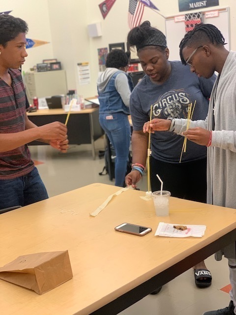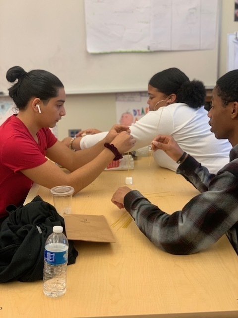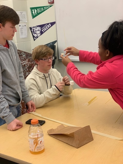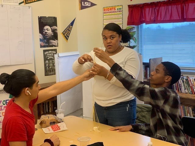 MAUMELLE, Ark. -- Students in Ms. Tiffany Shettles-Tull's AVID class at Maumelle High School participated in an "AVID Fun Friday" activity. These students built towers by doing the spaghetti marshmallow tower challenge. The basic idea is for a team to create the tallest possible tower, made of spaghetti noodles, that can support a marshmallow. Teams are given 18 minutes to complete the challenge, which also includes tape and string.